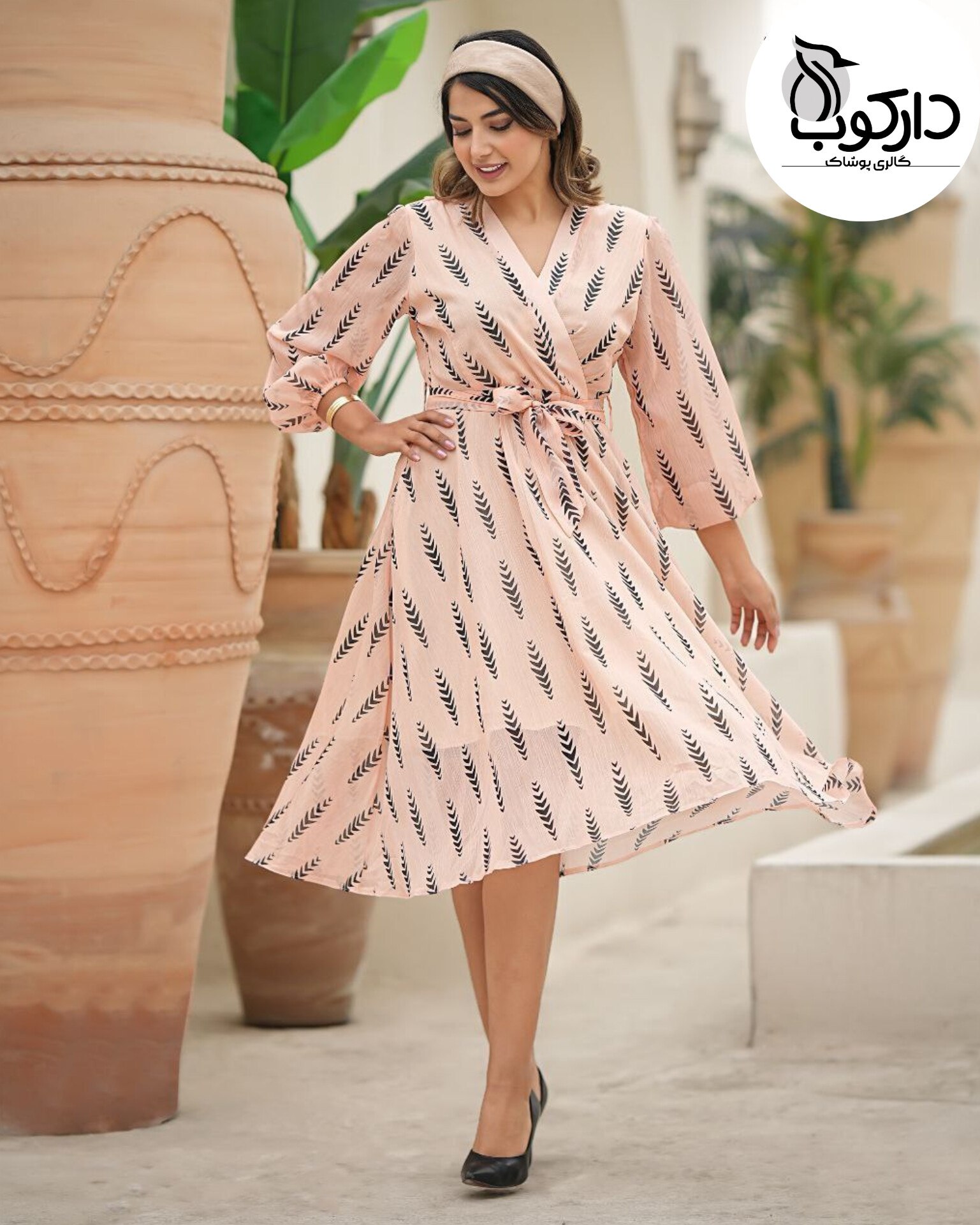 پیراهن مجلسی زنانه یقه هفت دامن کلوش کرپ حریر طرحدار۲٬۶۶۰٬۰۰۰ تومان