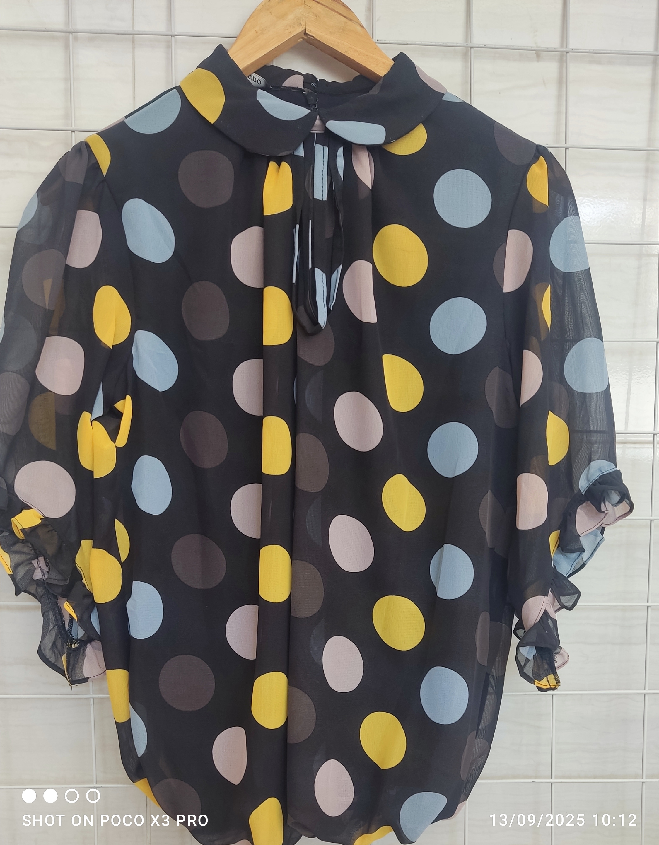شومیز مجلسی زنانه یقه ب ب کرپ حریر طرحدار