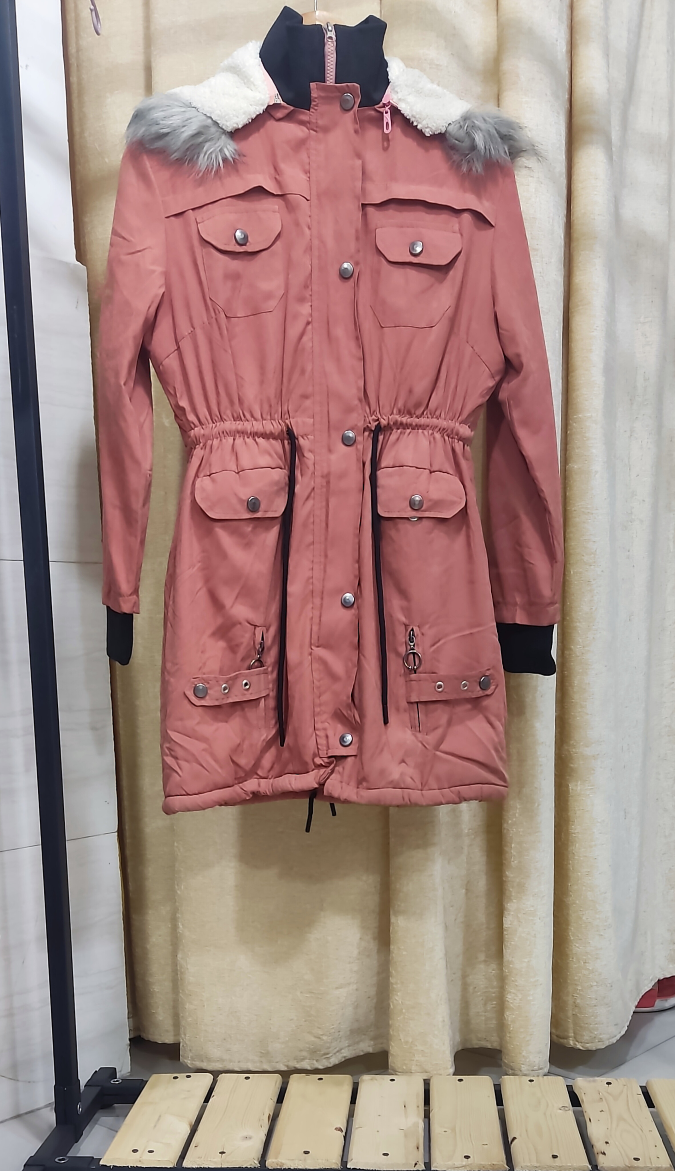 - ویژگیها: داخل کاپشن با پشم گرم و نرم، کلاه جداشونده با زیپ، جیبهای کاربردی، سر آستینهای کشباف، زیپ و دکمه برای بستن محکمتر، دور یقه کشباف برای راحتی بیشتر.