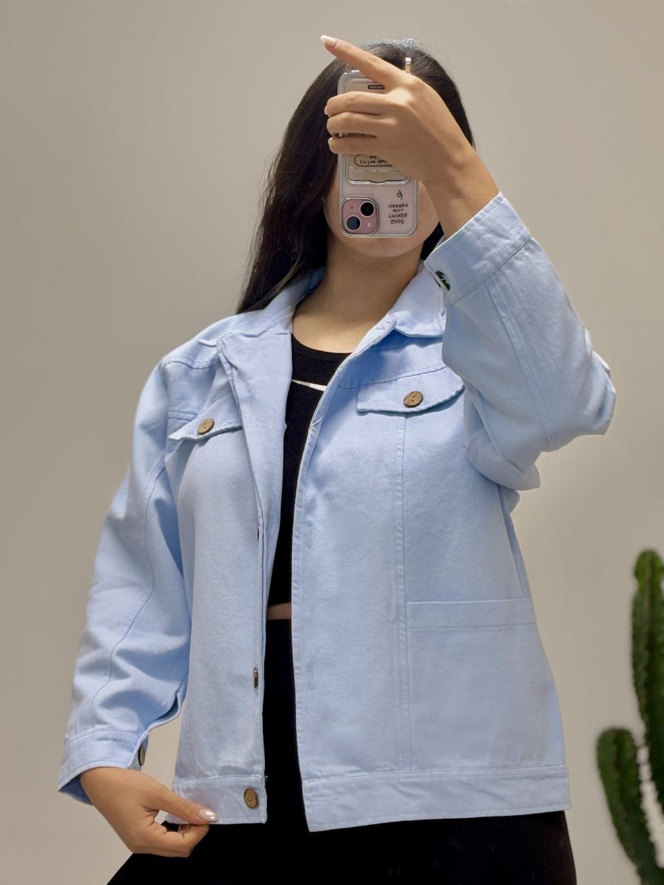 کت کراپ زنانه اسپرت پاییزه کتان جیب دار