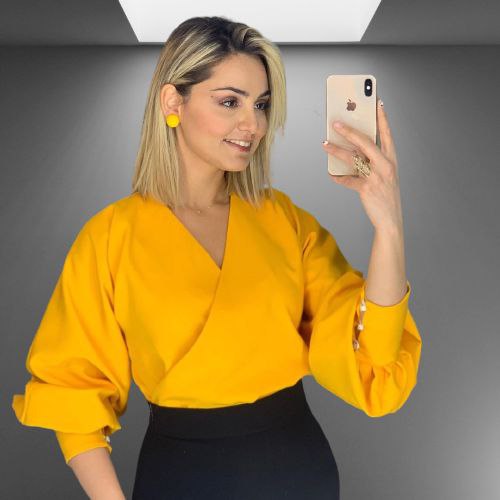 کراپ شومیز زنانه مازراتی یقه هفت آستین بلند